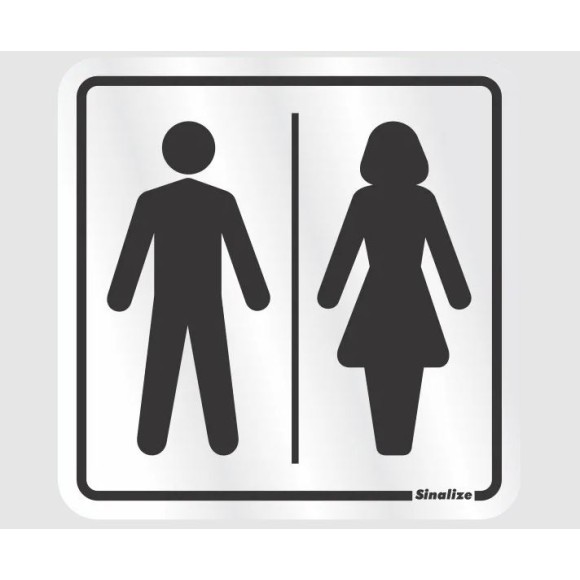 Placa sanitário unissex masculino/feminino / Medidas: 12x12cm / Embalagem contém: 1 placa / Material: Alumínio / Impressão: Aluprint / Fixação: Autoadesiva